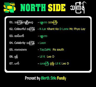 အေၾကာင္းေၾကာင္းေၾကာင့္ ေနာက္က်ေနတဲ့ " North Side သၾကၤန္ " Mixtape ကို အခုတင္ေပးလိုက္ပါၿပီ ။ သၾကၤန္က်ဖို႔ တစ္ပတ္ပဲလိုေတာ့